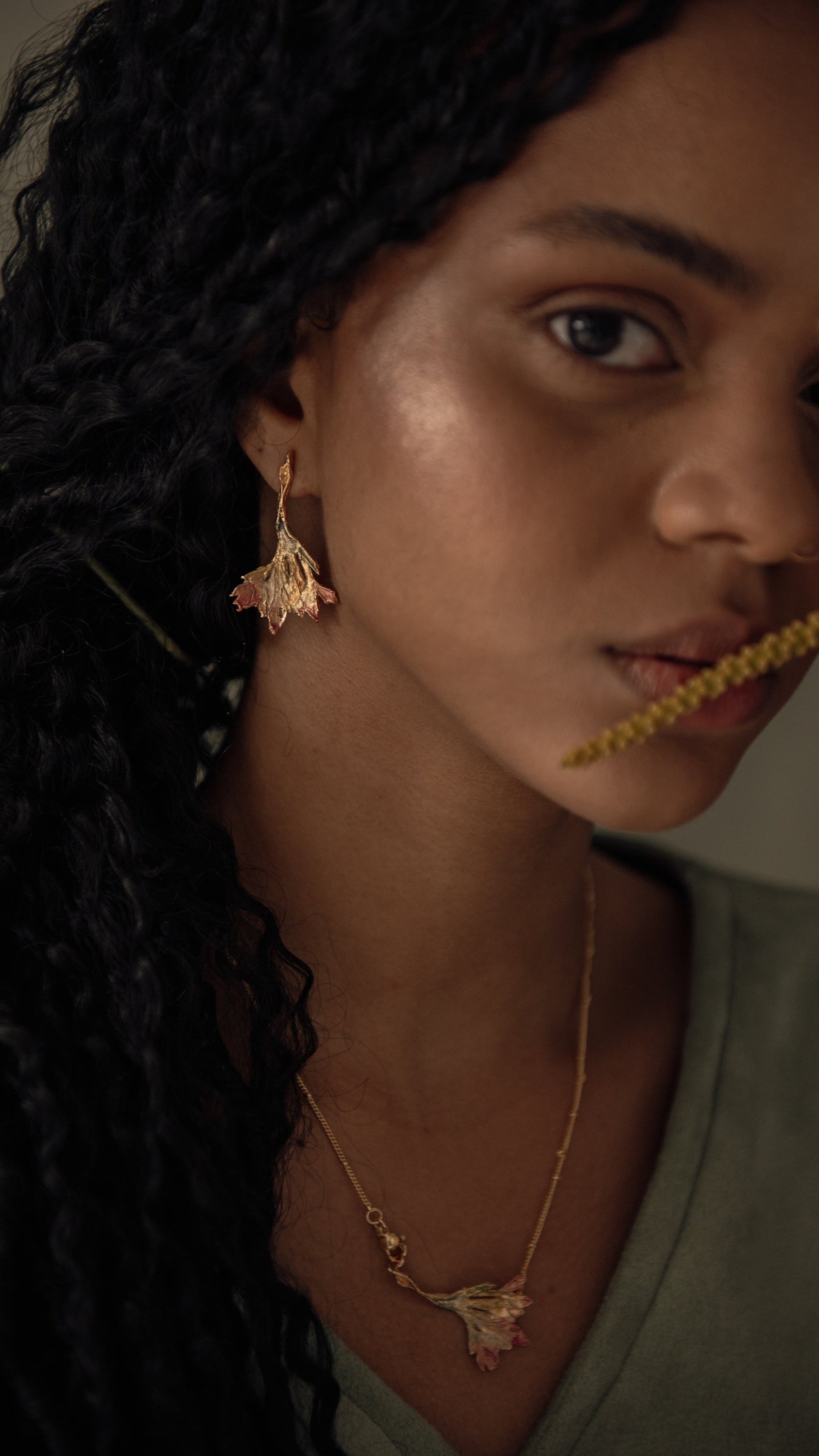 Inspirados en los capullos del Corazón Herido (Lamprocapnos spectabilis), estos aretes capturan la esencia de la naturaleza con movimiento y color. Cada capullo resalta con tonos vibrantes, disponibles en verde o rosa durazno.