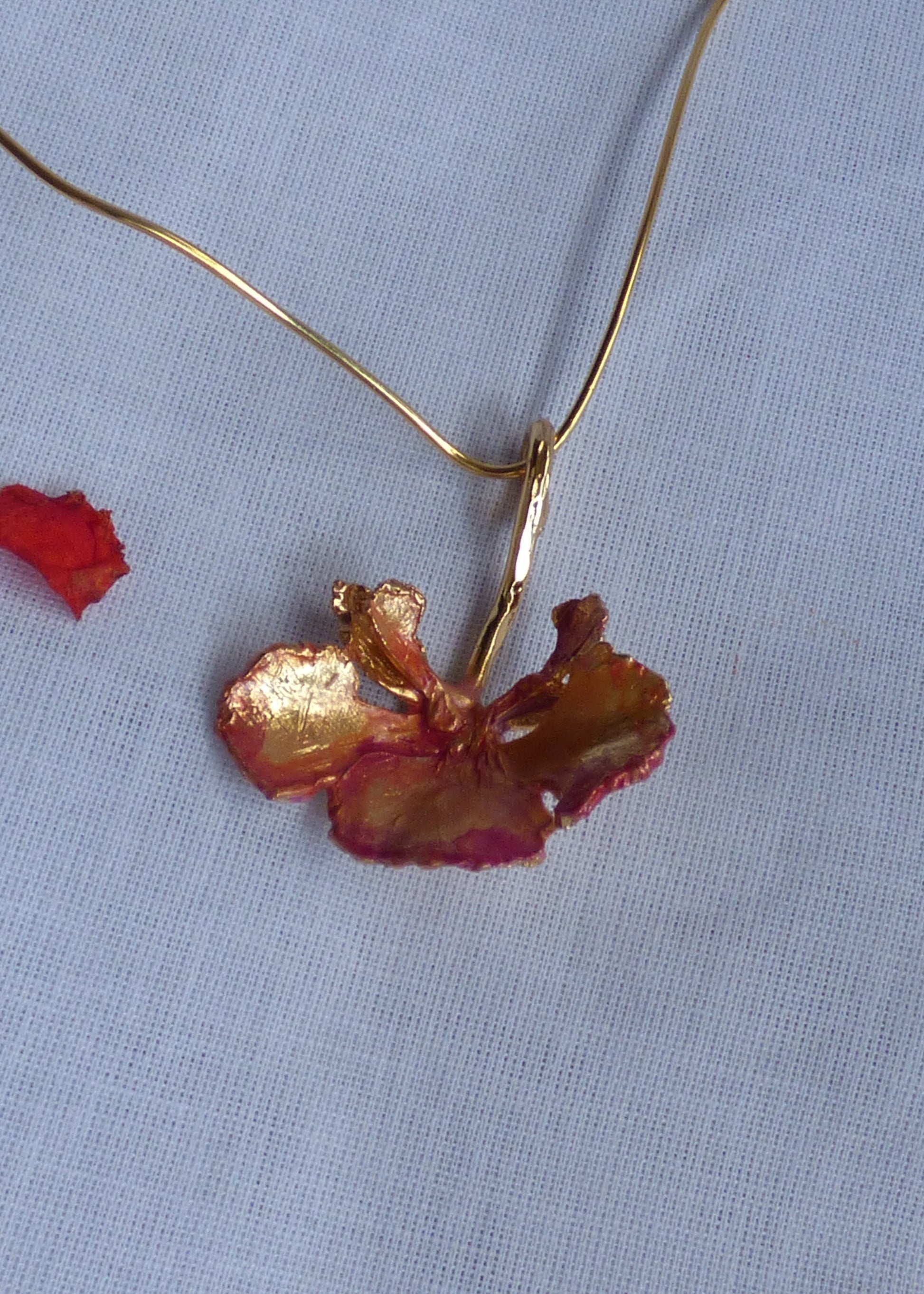 El Collar Alma nace de un encuentro cotidiano con la belleza. Inspirado en la flor del árbol Flamboyán (Acacia Roja), esta pieza captura la esencia de sus pétalos en movimiento. Cada detalle ha sido tallado a mano, inmortalizando su forma en metal para llevar un pedazo de naturaleza contigo.